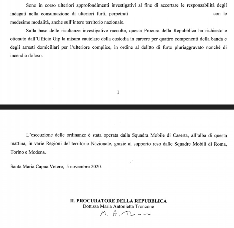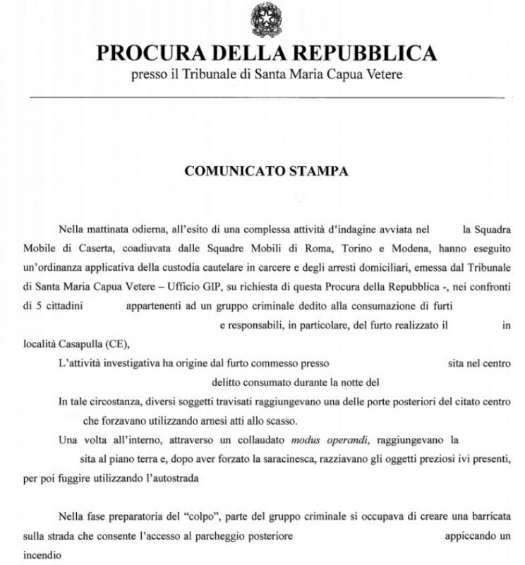 Pubblichiamo nota stampa della Procura di SMCV