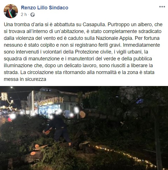 Questo quanto pubblicato sulla pagina facebook del Sindaco Lillo: