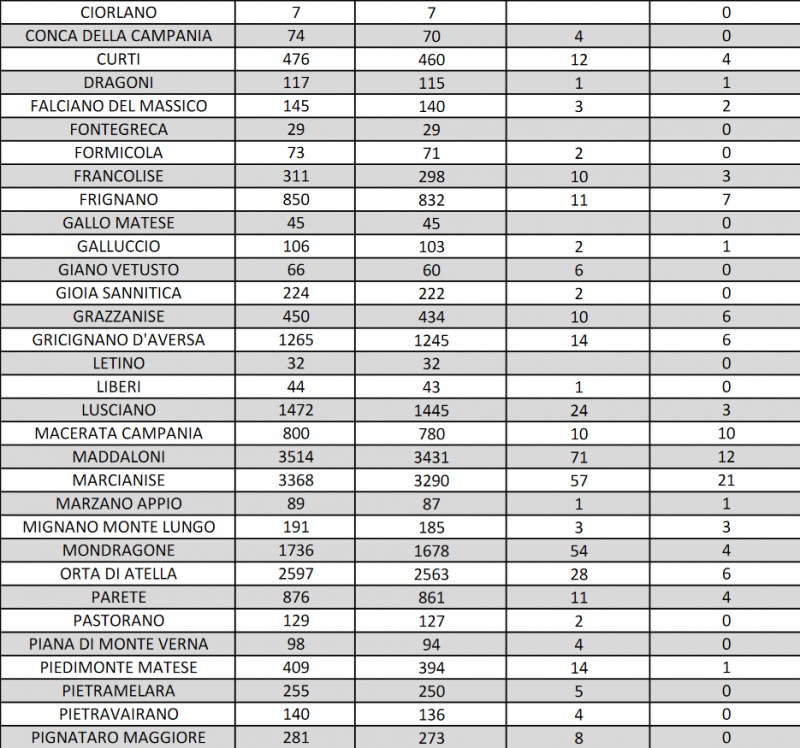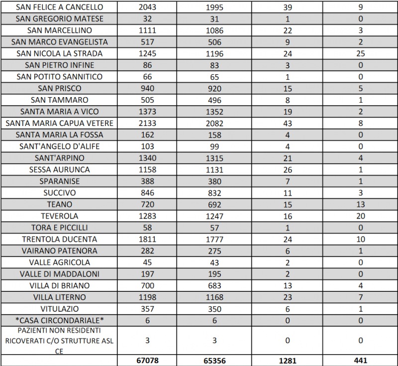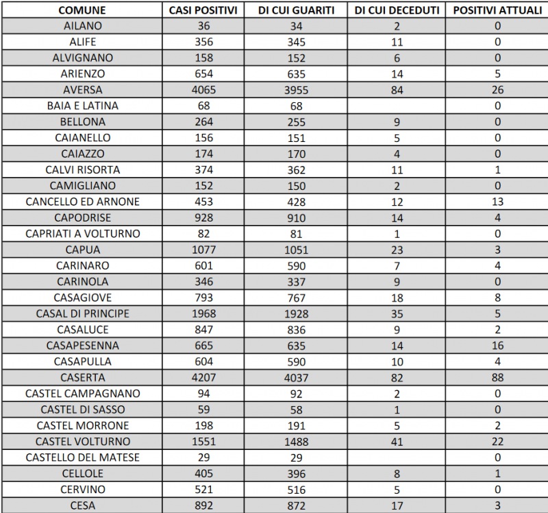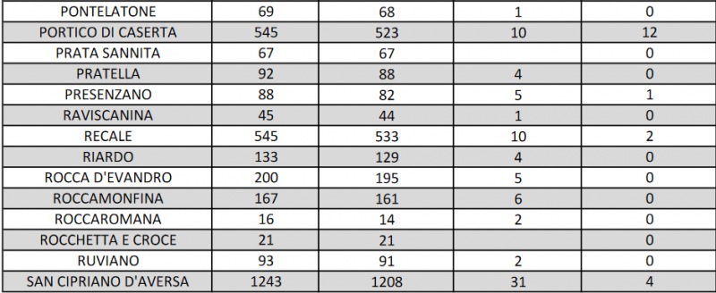 Questo quanto riportato dall'Asl Caserta: