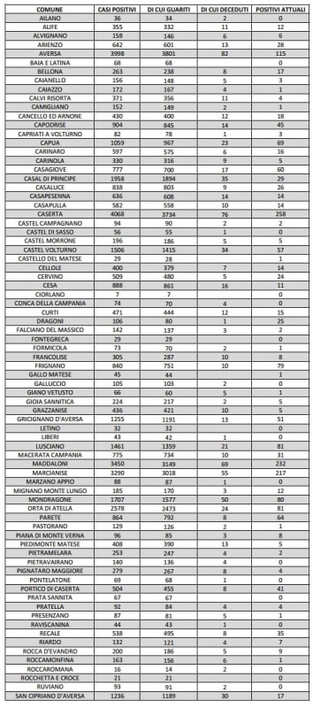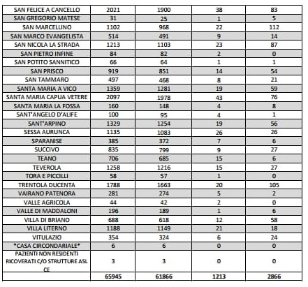 Coronavirus: questo l'ultimo report tamponi diffuso dall'Asl Caserta