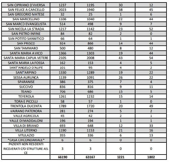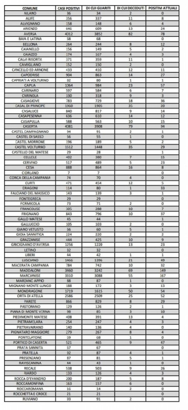 Questo il report sui tamponi da poco pubblicato sul sito web dell'Asl Caserta