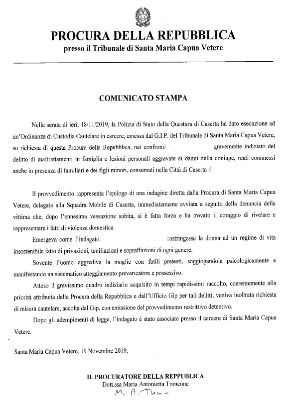 Questo parte del testo della nota inviataci dalla Procura della Repubblica presso il Tribunale di SMCV: