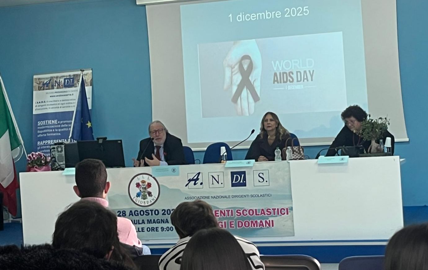 Questo il comunicato stampa diffuso dall'ISS Giordani di Caserta: "Oggi il nostro istituto ha vissuto un momento di grande valore umano e formativo in occasione della Giornata Mondiale contro l’AIDS. Un incontro dedicato all’informazione, alla prevenzione e alla lotta contro ogni forma di stigma. Ospiti d’eccezione: Prof. Della Selva, che ha offerto una panoramica - si legge nel comunicato - chiara e scientificamente rigorosa sull’HIV e sui progressi nella ricerca.