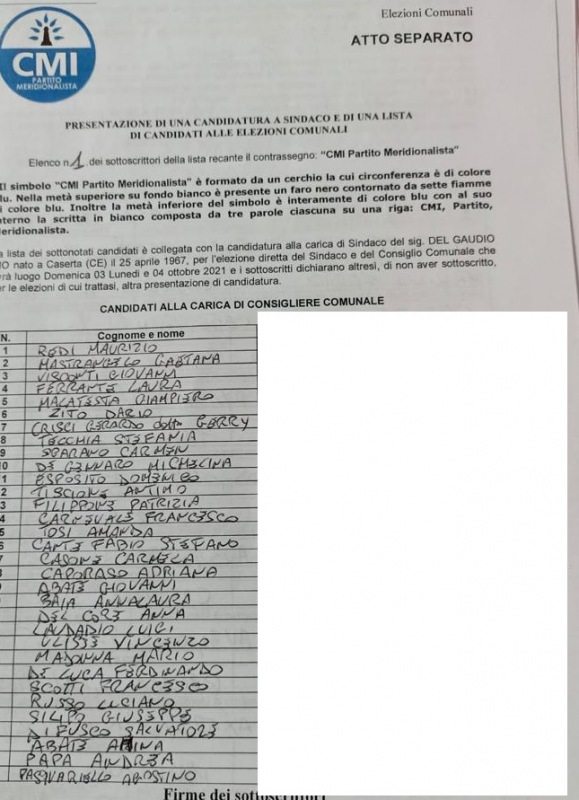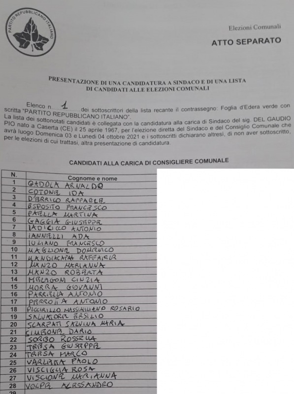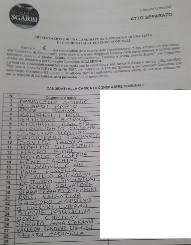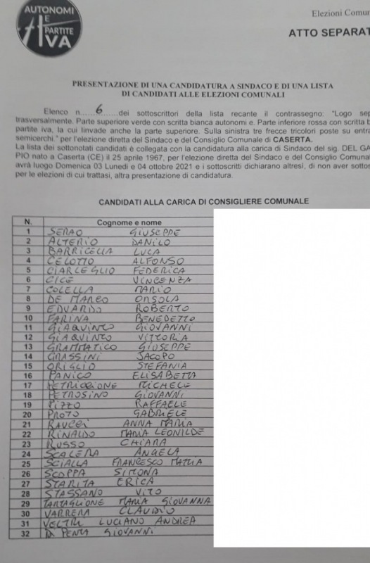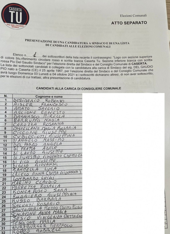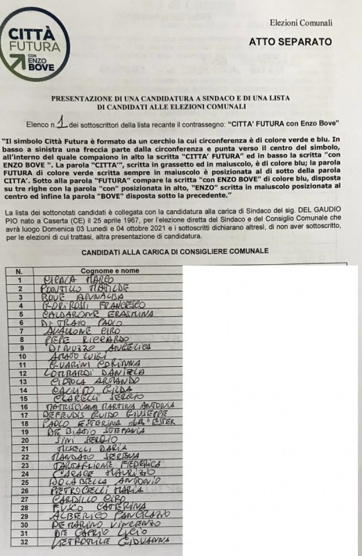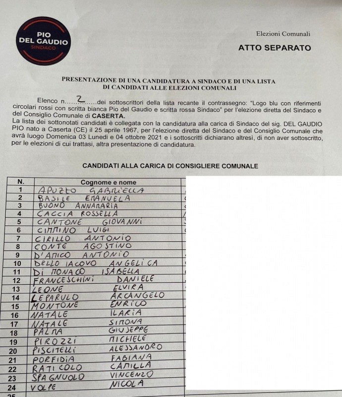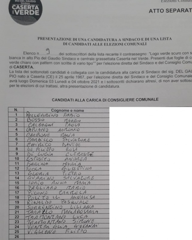 Queste le liste a sostegno del candidato Sindaco di Caserta Pio Del Gaudio