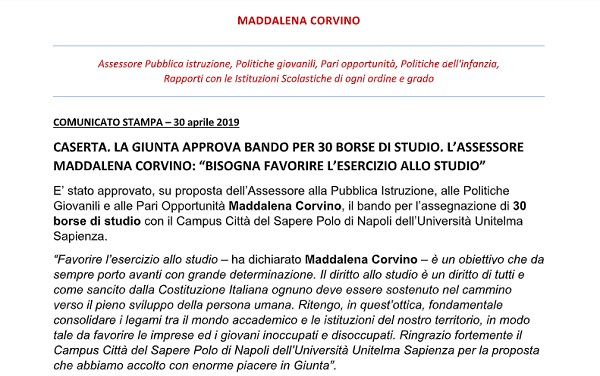 Questo il comunicato inviatoci dall'Ufficio Stampa dell'Ass. Maddalena Corvino.