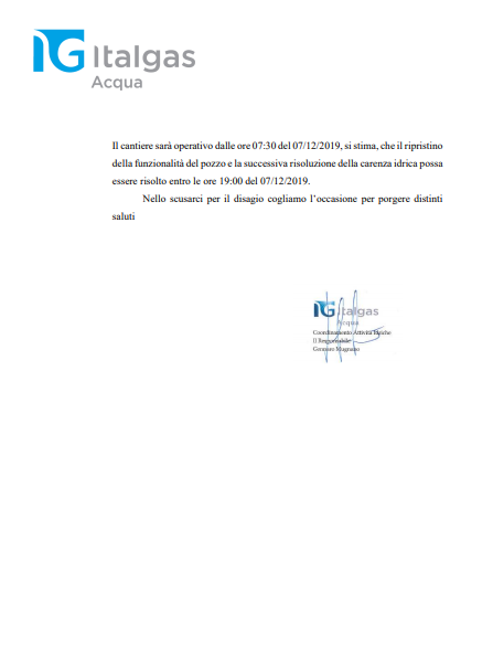 (ruota il telefono per leggere il comunicato di Italgas Acqua)