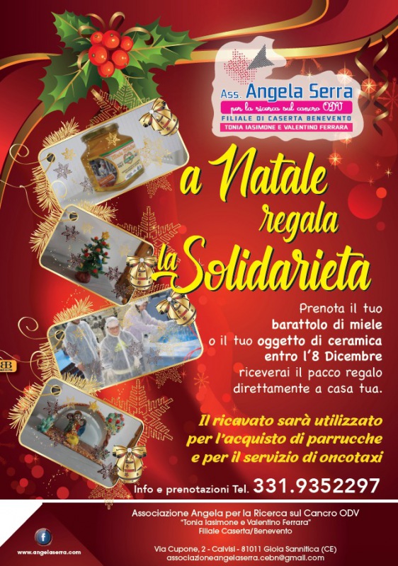 "Si rimette in moto l’organizzazione dell’Associazione Angela Serra per la ricerca sul cancro ODV filiale di Caserta/Benevento. Già a lavoro per una nuova raccolta fondi per l'acquisto di parrucche e per sostenere il servizio di Oncotaxi già attivo. La filiale Caserta/Benevento stavolta si prepara ad un Natale tanto particolare quest’anno, a causa dell’emergenza sanitaria che sta flagellando la nostra Italia e il mondo, e lo fa con l'entusiasmo di sempre.-spiega la nota-Grazie ad una donazione di miele da parte del Co.Na.Pro.A. (Consorzio Nazionale Produttori Apistici) con sede a Vairano Patenora e alla collaborazione di un’artigiana della ceramica Ada Colapetella, titolare della Bottega Terraquea di Piedimonte Matese, questo Natale-spiega la nota- si potrà regalare la solidarietà prenotando un barattolo di miele o un oggetto in ceramica e destinando un’offerta volontaria all’Associazione. Sarà possibile prenotare la busta regalo direttamente chiamando o scrivendo al numero dell’Associazione entro l’8 dicembre (331 935 2297) e a partire dal 9 dicembre l’Associazione si occuperà di far recapitare direttamente a casa tua il dono.-si legge nella nota- Sulla pagina facebook “Angela Serra Caserta Benevento” sarà possibile scegliere gli oggetti in ceramica disponibili, mentre il barattolo di miele sarà possibile averlo con un contributo volontario di 10 euro.-spiega la nota-Doverosa precisazione: dentro e dietro il barattolo donato dal Co.Na.Pro.A. non c’è solo miele ma l’opera del Laboratorio di Apicoltura della Cooperativa Sociale L.A.I. (Lavoro Anch'Io). Si tratta di una cooperativa sociale, ai sensi della legge 381/91 art.1 comma I lettera A e B, che -spiega la nota-si occupa dell'integrazione lavorativa di persone diversamente abili. Le attività svolte sono rivolte a persone disabili con insufficienza intellettiva medio grave e sono finalizzate ad aumentare il grado di autonomia personale della persona disabile e a sviluppare comportamenti socialmente competenti, primo fra tutti l'acquisizione di un lavoro, anche protetto, che richiede la partecipazione attiva e che-spiega la nota- consente una rete di collegamenti con i vari settori produttivi e non della rete sociale. Il che rende fattibile alla persona disabile: trovare un'identità sociale, sperimentare relazioni di reciprocità, strutturare i tempi della giornata secondo i ritmi della vita attiva."