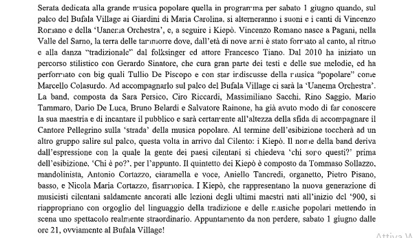 CASERTA. BUFALA VILLAGE. Sabato serata di grande musica