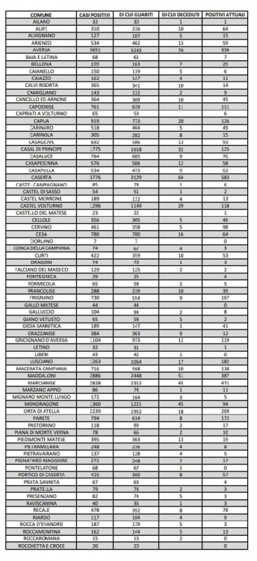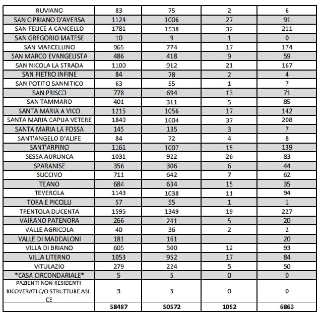 Questo il report tamponi pubblicato poco fa sul sito web dell'Asl Caserta.