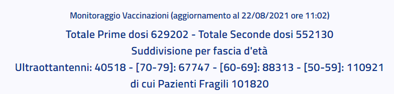 Questo il report sui vaccini somministati in Provincia di Caserta disponibile sul sito web dell'Asl locale