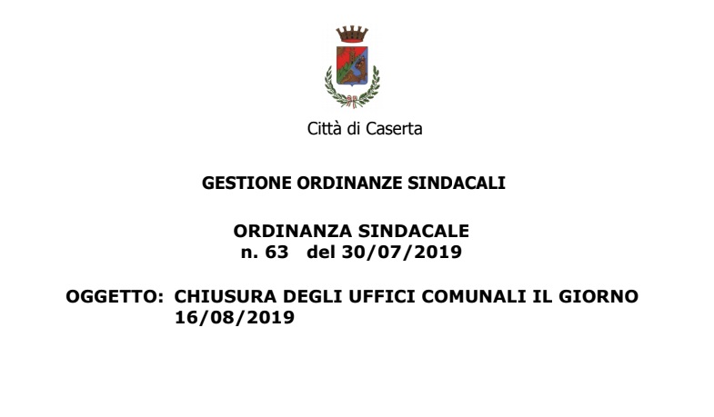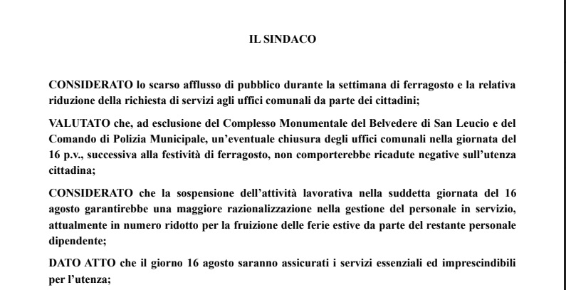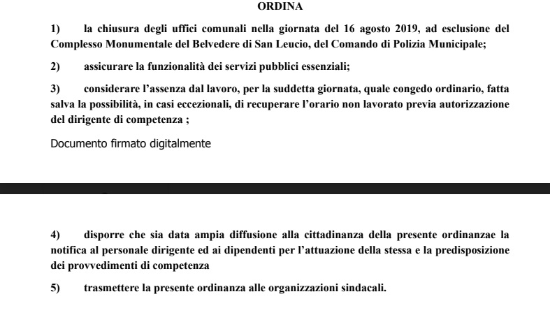 Questa l'Ordinanza del Sindaco Carlo Marino.