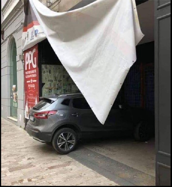 La foto scattata dal proprietario della nota agenzia di viaggi Reggia Travel Francesco Marzano non ha bisogno di ulteriori commenti. Siamo in Corso Trieste a Caserta e il Suv e' stato parcheggiato quasi all'ingresso dell'ex galleria del Corso