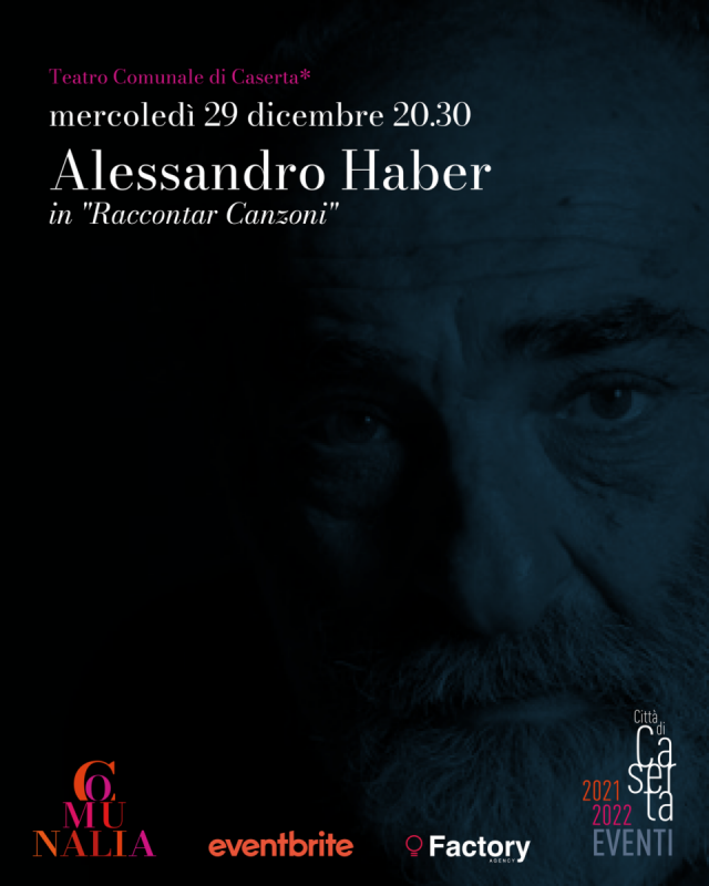 Questo il comunicato stampa diffuso dal Comune di Caserta: "Dopo alcune variazioni sul programma originale, dovute all’emergenza pandemica, entra nel vivo “Comunalia 2021”. la manifestazione di musica e teatro, organizzata dagli Assessorati alla Cultura e agli Eventi del Comune di Caserta, coordinati rispettivamente da Enzo Battarra ed Emiliano Casale. La kermesse, in programma fino al 26 marzo 2022, è finanziata - si legge nel comunicato - con fondi regionali POC per il “Piano strategico Cultura e Beni Culturali Programmazione 2021”. Mercoledì 29 dicembre al 20,30, sul palcoscenico del Teatro Comunale Parravano ci sarà Alessandro Haber con lo spettacolo "Raccontar Canzoni". L’ingresso è libero con prenotazione obbligatoria sul sito eventbrite.it. L’accesso al teatro sarà consentito con esibizione di SUPER GREEN PASS e mascherina FFP2. Lo spettacolo - si legge ancora - di Alessandro Haber – si legge nella scheda di presentazione dell’evento - non è solo un concerto, ma soprattutto un racconto che darà voce al suo amore per la musica. È da questa passione, e dall’incontenibile voglia di cantare, che la rappresentazione assume l’unicità di un concerto e la fantasia creativa caratteristica del mondo teatrale. “È uno spettacolo atipico - che mischia prosa e musica dal vivo”. Haber - prosegue il comunicato - mette in gioco le proprie emozioni lasciandosi guidare da un percorso musicale in un viaggio all’interno della memoria, della sua storia, e della sua carriera. Quindi lo spettacolo riassume canzoni che appartengono ai quattro album all'attivo che Alessandro Haber ha interpretato e alcuni brani di grandi autori come Luigi Tenco, Sergio Endrigo, Riccardo Cocciante, in più’ "la valigia dell'attore” la canzone scritta apposta per lui da Francesco De Gregori - concude il comunicato - e alcune poesie di Bukowski musicate da Giuseppe Fulcheri e arrangiate dal maestro Sasà Flauto".