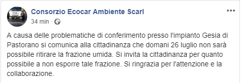 Questo il post pubblicato sulla pagina fb ufficiale di Ecocar.