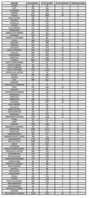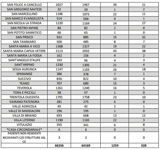 Questo il report odierno sui tamponi pubblicato poco fa sul sito dell'Asl Caserta