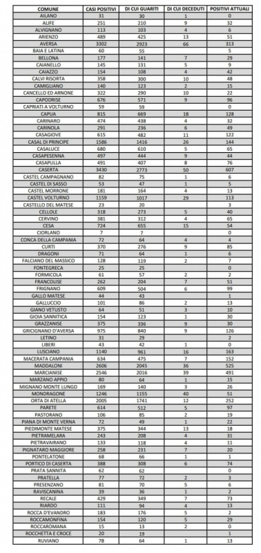 Contagi in lieve aumento. Ecco i numeri del report tamponi pubblicato pochi minuti fa sul sito dell'Asl Caserta:
