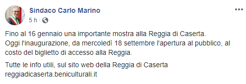 Questo il post pubblicato sulla pagina Facebook del Sindaco di Caserta Carlo Marino: