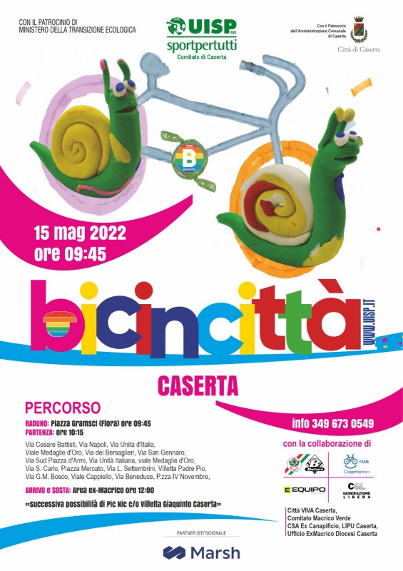 Questo il comunicato stampa diffuso da Uiso Caserta: "La XXXVI edizione di Bicincittà Uisp è pronta a coinvolgere tutta l’Italia su due ruote, per chiedere sostenibilità ambientale e strade sicure. Una festa di sport - si legge nel comunicato - per tutta la famiglia, una biciclettata non agonistica e aperta a tutti, per occupare i centri urbani e chiedere aria pulita e città più vivibili. Una mobilità alternativa che deve permettere di vivere gli spazi comuni urbani con benefici per la salute individuale e la possibilità di recuperare un sano rapporto con le nostre città, sempre - si legge ancora - all’insegna dello sport per tutti. La bicicletta è un simbolo di sport sociale , ideale per spostarsi in città e per affermare stili di vita attivi, per un’attività aerobica regolare e a bassa intensità, che funga da efficace presidio medico. Maggio è il mese delle due ruote con Bicincittà Uisp che Domenica 15 Maggio animerà decine di città italiane( ben 5 in Provincia di Caserta) coinvolgendo ciclisti di tutte le età. La condivisione dell'evento - recita ancora il comunicato- con altri Enti/Associazioni(in primis Fiab-Bimbinbici), impegnati sul territorio per ribadire questi ed altri temi, è importante per promuovere un'idea di Città diversa, di Città possibile. In particolare a Caserta il tema scottante resta la mobilità sostenibile nel centro cittadino. A Caserta le associazioni aderenti rinnovano la richiesta di sostenere l’utilizzo delle due ruote come mezzo virtuoso di mobilità, attraverso scelte coraggiose e lungimiranti che prevedano - recita ancora il comunicato - la forte limitazione del traffico veicolare privato di tutto il centro storico e la creazione di piste ciclabili sicure/effIcienti. Inoltre , rispetto all’altro tema molto sentito della salvaguardia dei beni comuni, si chiede l’apertura al pubblico degli spazi verdi chiusi quali l’ex Macrico,la Flora e Villa Maria Carolina. Per questo motivo, in collaborazione con il Comitato Macrico Verde e la Diocesi di Caserta - prosegue il comunicato - la manifestazione quest’anno terminerà per la prima volta all’interno dell’area Ex Macrico. Bicincittà 2022 gode del patrocinio del Ministero dell’Ambiente ed a Caserta dell’ Amministrazione Comunale, alla quale si chiede una più decisa e radicale politica di contrasto all’inquinamento ambientale. Bicincittà è sostenuta da Marsh, che garantisce anche la copertura assicurativa per tutti i partecipanti iscritti. Di seguito il programma - si legge ancora - della manifestazione di Domenica 15 Maggio 2022: raduno (ore 9:45): piazza Gramsci, partenza: ore 10:15, percorso: Via Cesare Battisti - Via Napoli - Via Unità d'Italia – Viale Medaglie d’Oro – Via dei Bersaglieri- Via San Gennaro - Via Sud Piazza d’Armi- Via Unità Italiana- viale Medaglie d’Oro – via S. Carlo – Piazza Mercato- Via L. Settembrini- Villetta Padre Pio- Via G.M. Bosco – Viale Cappiello-Via Beneduce –P.zza IV Novembre (sosta area Ex Macrico). Arrivo e sosta: ( ore 12,00 circa) Successivamente è previsto un raduno pic nic presso i giardini di Villetta Giaquinto. L’assistenza e scorta tecnica sul percorso sarà garantita anche dal Servizio Volontariato Giovanile Regionale".