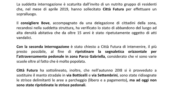 Questo il comunicato inviatoci dall'Ufficio Stampa di Città Futura.