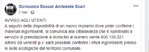 Questo il post pubblicato sulla pagina fb ufficiale di Ecocar