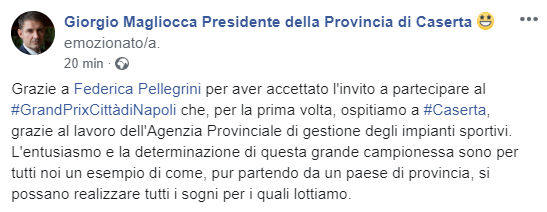 Questo il post pubblicato sulla bacheca Facebook del Presidente della Provincia di Caserta Giorgio Magliocca: