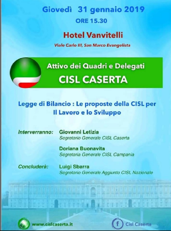 Si svolgerà giovedì pomeriggio alle ore 15.30 presso l'Hotel Vanvitelli il Convegno della Cisl