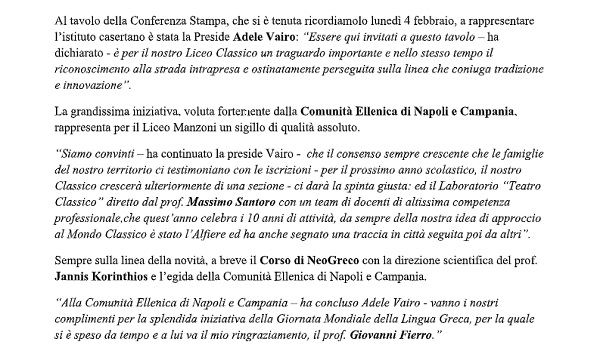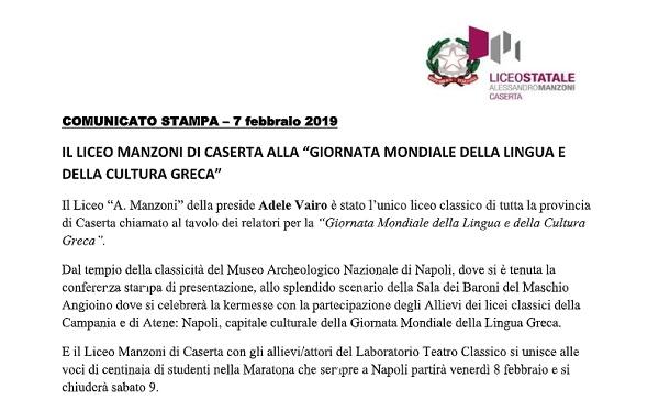 Questo il comunicato inviatoci dall'Ufficio Stampa del Liceo Manzoni di Caserta.