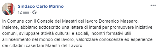 Questo il post pubblicato sulla pagina Facebook del Sindaco di Caserta Carlo Marino: