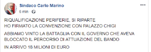 Questo il post pubblicato sulla bacheca fb del Sindaco di Caserta Carlo Marino.