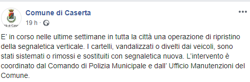 Questo il post pubblicato sulla pagina Facebook "Comune di Caserta":