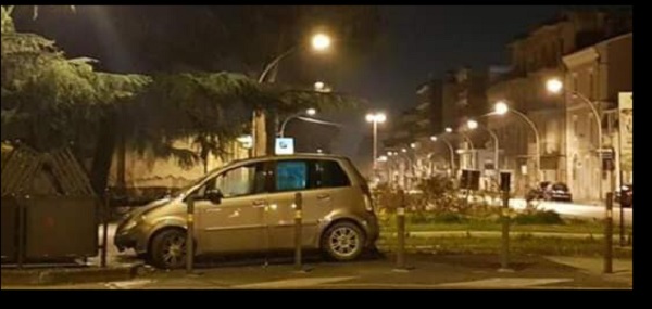 Come si evince dalla foto un'automobile è uscita di strada in pieno centro questa notte a Caserta.