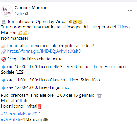 Dalla pagina Facebook dell'Istituto Manzoni di Caserta