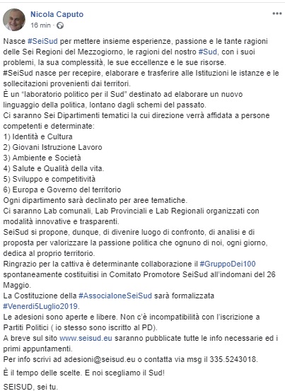 Questo il post pubblicato sulla pagina fb ufficiale dell'On. Nicola Caputo.