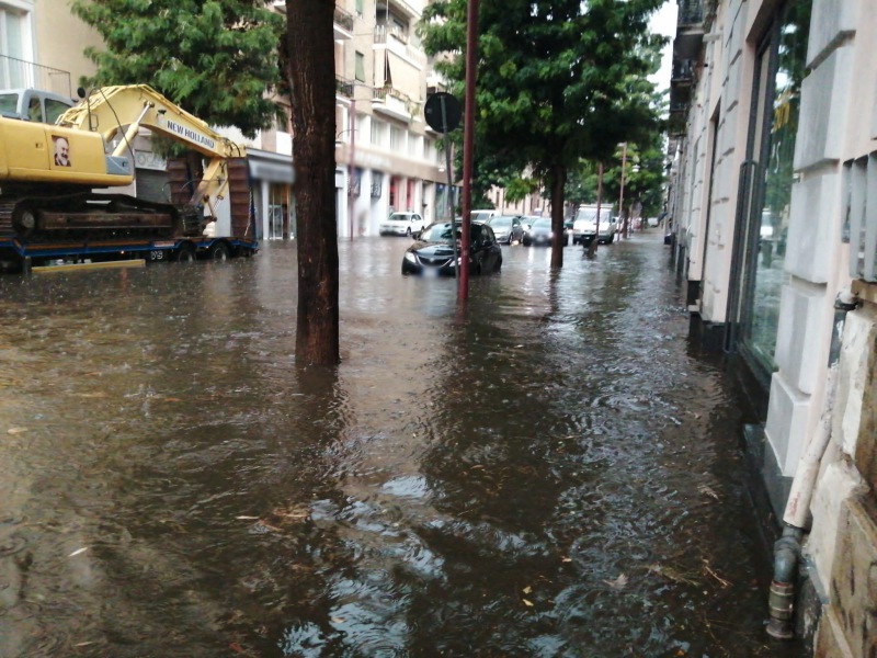 Corso Trieste allagato durante la bomba d'acqua che ha colpito Caserta nel pomeriggio di oggi, 9 agosto. Un fiume d'acqua quasi impraticabile. E' stato un pomeriggio di pioggia violenta quello che e' appena andato via. E domani, 10 agosto, ricordiamo che c'e' una nuova allerta meteo gialla nella nostra Regione.