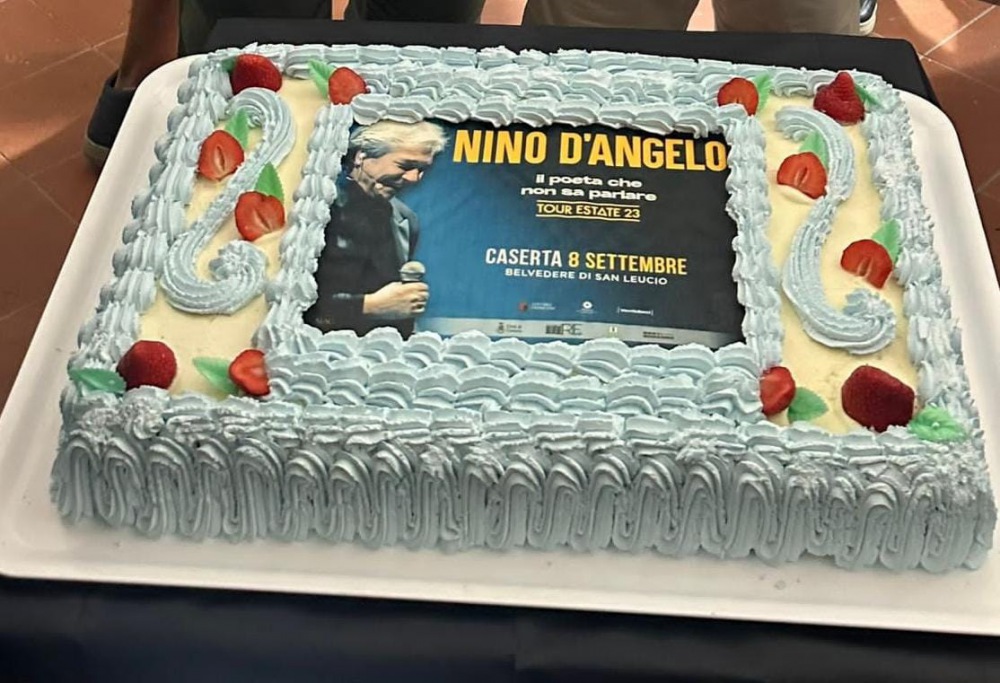 Nino D'Angelo al Belvedere di Caserta per la rassegna 'Un'Estate da BelvedeRe' ha riscosso ieri grandissimo successo. Tanto pubblico, sold out e standing ovation per l'amato artista partenopeo. Tra i suoi fans anche i proprietari dello Sweet Cafè che hanno omaggiato D'Angelo con questa meravigliosa e buonissima torta prodotta dal bar-pasticceria sito in Via G.M. Bosco a Caserta