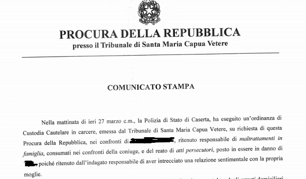 Questo parte del comunicato inviatoci dalla Procura della Repubblica presso il Tribunale di Santa Maria Capua Vetere.