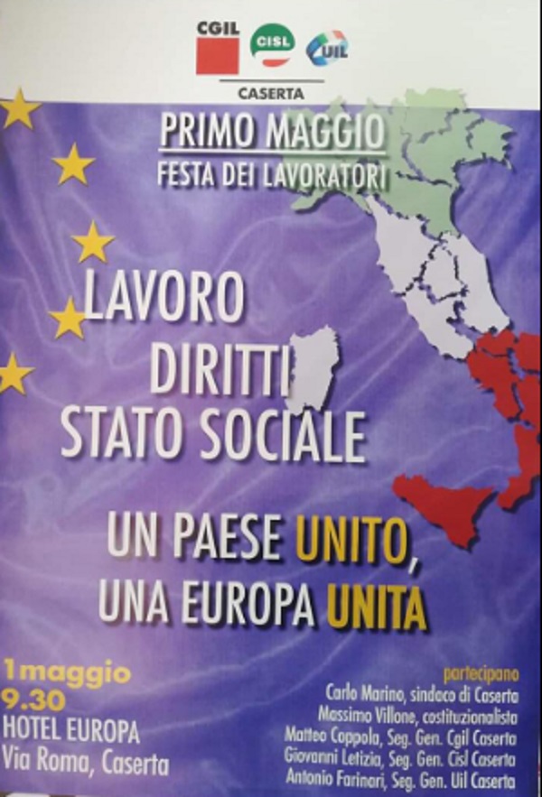 Appuntamento mercoledì 1 maggio alle ore 9.30 all'Hotel Europa con l'incontro 'Lavoro, diritti e stato sociale - un paese unito, un'Europa unita'