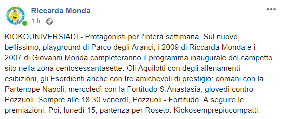 Questo il post pubblicato su Facebook dall'allenatore di basket Riccardo Monda: