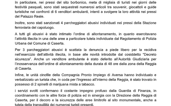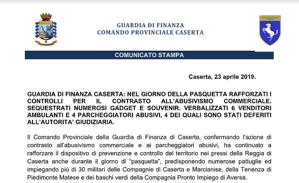 Questo il comunciato inviatoci dal Comando Provinciale della Provincia di Caserta.
