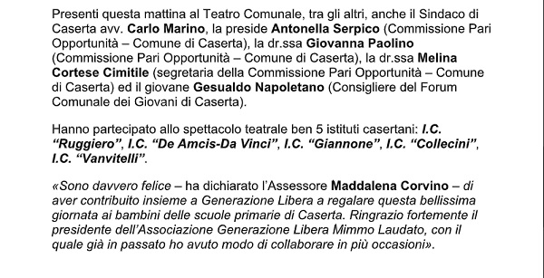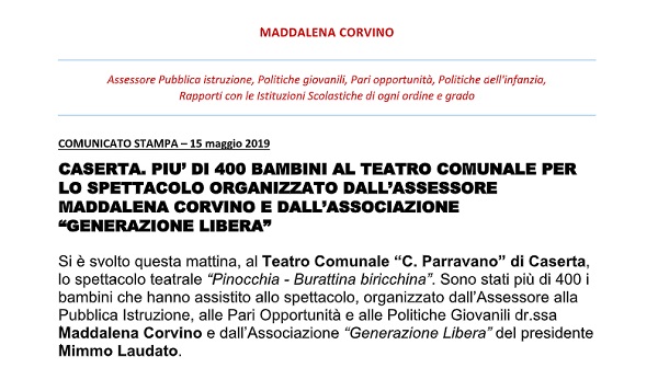 Questo il comunicato inviatoci dall'Ufficio Stampa dell'Ass. Maddalena Corvino.