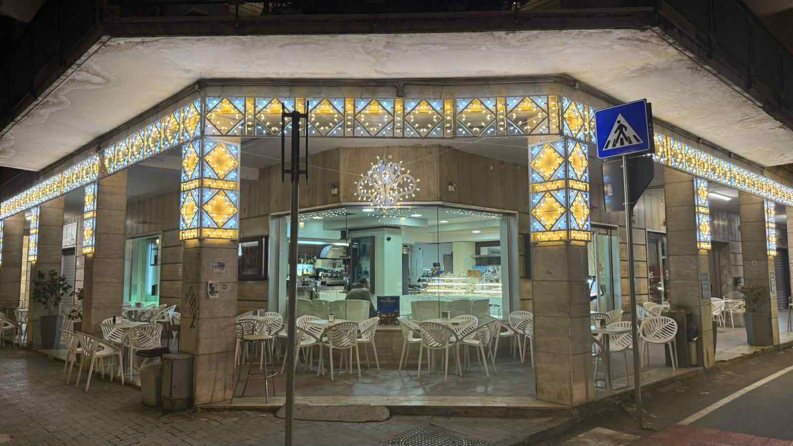 Via Mazzini e anche diversi esercizi commerciali di Caserta si stanno rifacendo il look in vista delle festività natalizie. È il caso dello storico bar, caffetteria e pasticceria 'Sweet Cafè', un'icona del capoluogo di 'Terra di Lavoro, sito all'angolo tra via G.M. Bosco e Corso Giannone. Da poche ore i Porrino hanno terminato l'allestimento luminoso ed è come ogni anno meraviglioso ed elegante.