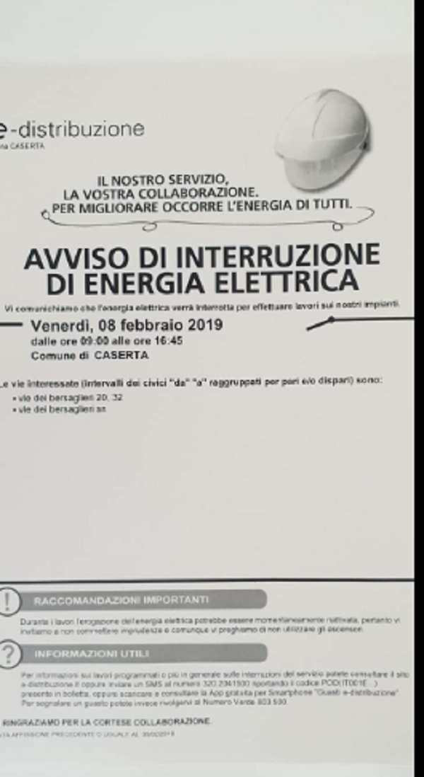 Il Comune avvisa che mancherà l'energia elettrica per quasi mezza giornata.