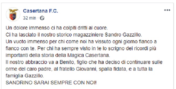 Questo il post pubblicato sulla pagina fb ufficiale della Casertana F.C.