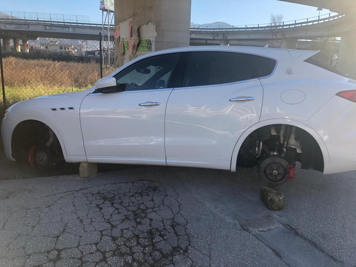 Un brutto risveglio questa mattina per il proprietario di questa auto parcheggiata la scorsa notte nella frazione di Tredici di Caserta. In azione i ladri di pneumatici che hanno rubato tutto il treno di gomme di questa vettura.