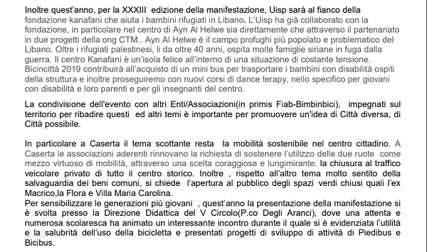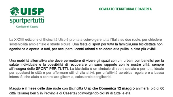 CASERTA. Tutto pronto per la XXXIII edizione di BicincittĂ