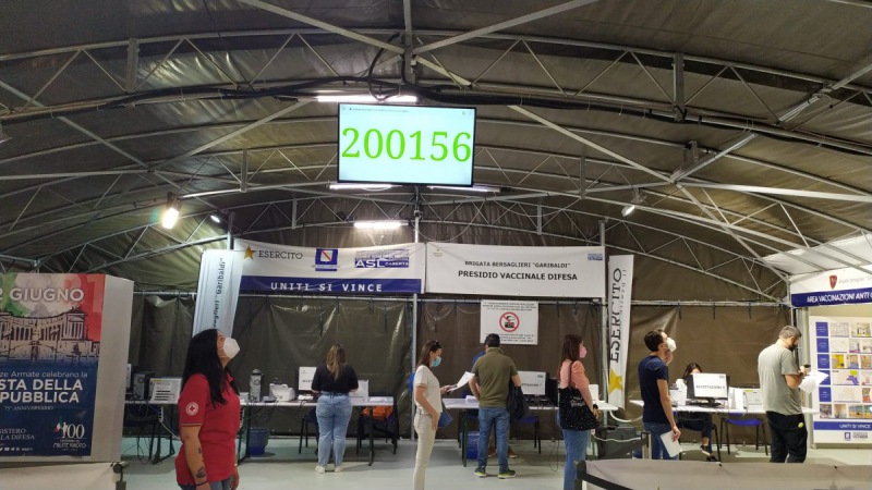 Campagna vaccinale. Ieri mattina i militari della Brigata Garibaldi hanno raggiunto il traguardo della 200mila dosi somministrate. Una grande soddisfazione che conferma l'eccellente organizzazione dell''hub allestito dai Bersaglieri e lo straordinario successo della collaborazione con l'Asl Caserta. L'ulteriore conferma del ruolo centrale che la Brigata Garibaldi sta svolgendo nella battaglia al Coronavirus in Provincia di Caserta.