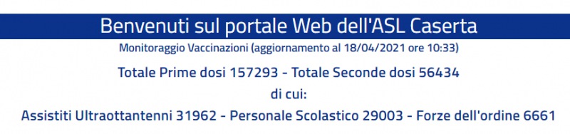 Questi i dati sulla campagna vaccinale in provincia di Caserta da poco pubblicati sul sito Web dell'Asl locale.