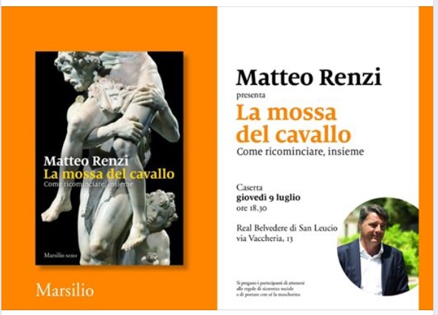 Pubblichiamo NOTA STAMPA On. Caputo:"Matteo Renzi a Caserta per presentare il suo libro “La Mossa del Cavallo” Tappa casertana per il tour di Matteo Renzi per la presentazione del suo libro, “La Mossa del Cavallo. Come ricominciare, insieme" (Marsilio). Il leader di Italia Viva, sarà al Real Belvedere di San Leucio a partire dalle 18:30. L’incontro - si legge nella nota -, che avverrà nel rispetto della sicurezza e della normativa relativa al distanziamento sociale, sarà l’occasione per condividere le proposte di Italia Viva per la ripartenza del Paese sul piano economico, politico, sociale, sui temi dell’educazione, del digitale e dell’idea di futuro. Ad accogliere Matteo Renzi ci saranno, Nicola Caputo e i coordinatori provinciali, Carmen De Rosa e Giuseppe Altrieri, oltre a tutta la famiglia di Italia Viva Caserta, impegnata in queste settimane a costruire una presenza forte per le prossime regionali registrando adesioni ed entusiasmo. «Il coraggio della politica è il coraggio delle scelte - si legge nella nota -, di rivendicare un futuro che non è scontato,ma dipende da noi. È giunto il momento dei contenuti, non dei pregiudizi. È urgente discutere di idee e progetti»."