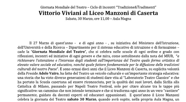 CASERTA. Vittorio Viviani al Liceo Manzoni