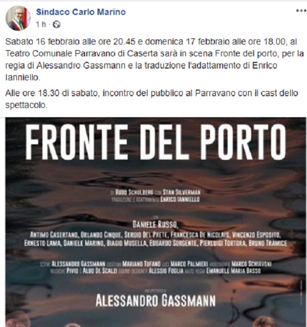Questo il post pubblicato sulla pagina fb ufficiale del Sindaco di Caserta Carlo Marino.